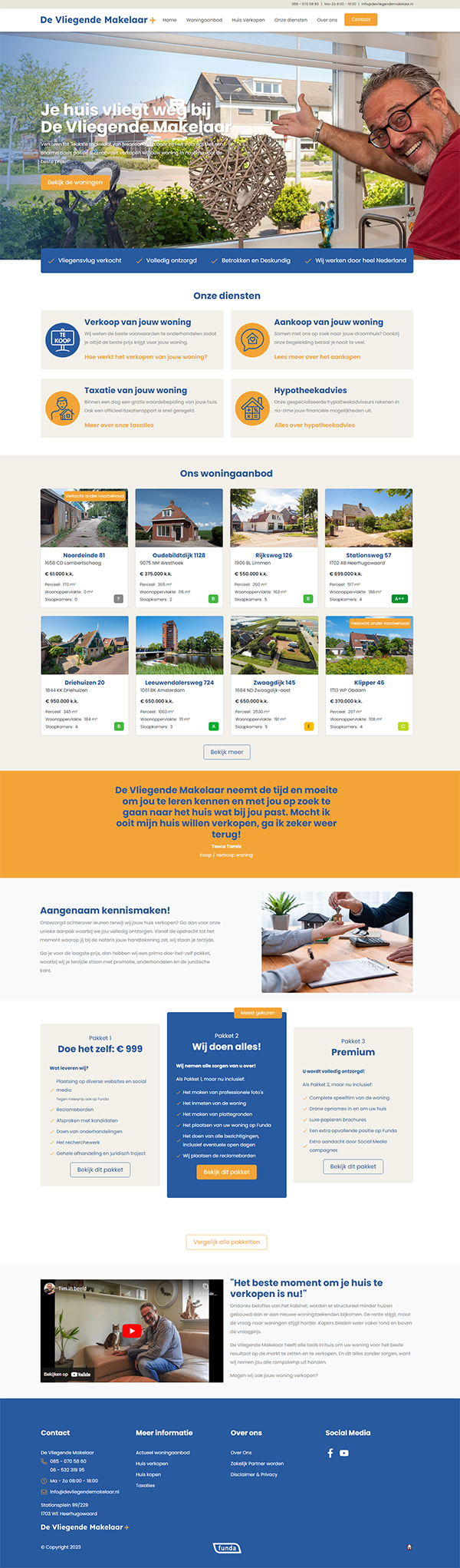 Daarna integreerden onze programmeurs het actuele aanbod naadloos in een zogenaamde PWA website, zodat de site niet alleen waanzinnig snel laadt, maar ook eenvoudig is bij te houden. Tot slot zorgde bevriende ontwerper Wouter van Dreamlab voor een professionele huisstijl en een zeer zakelijk ogend ontwerp. Het compleet vernieuwde De Vliegende Makelaar is klaar om Nederland te veroveren, maar te beginnen natuurlijk met de mensen die in Alkmaar een makelaar zoeken om hun huis te verkopen. Want de victorie begint natuurlijk daar!