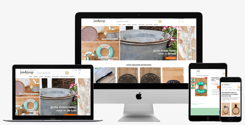 Naast de merken die Jan en Juup in het assortiment heeft, speuren zij naar unieke brocante, vintage woonaccessoires en tuindecoratie die het assortiment van de webwinkel goed aanvullen. Met zo'n breed assortiment is natuurlijk een goed georganiseerde webwinkel nodig. Hoewel Jan en Juup al beschikte over een Magento 2 webshop, bleek deze niet optimaal te werken. Veel onderdelen van het gebruikte thema werkten slecht of deden het zelfs helemaal niet meer. Ook het bijhouden van de content kon stukken efficiënter. Tot overmaat van ramp was basisfunctionaliteit niet in alle browsers te gebruiken, en duurde het laden van een pagina gevaarlijk lang. Hoog tijd voor Ridders!